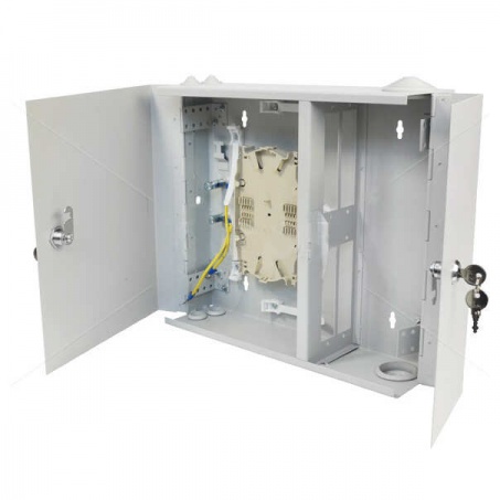 FOB-G016/16-2-32 - настенный двухдверный бокс, позволяющий разделывать до 32 оптических волокон. Является универсальным решением для реализации вводно-распределительных устройств, телекоммуникационных кроссов, серверных комнат, и других коммуникационных центров. Эргономичный корпус и внутренняя комплектация бокса удовлетворяют всем необходимым эксплуатационным запросам. Наличие механических замков позволяет ограничить доступ посторонних лиц к сварным и разъёмным соединениям оптических кабелей.