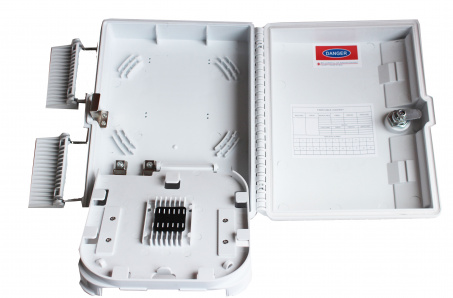 Робочі температури: -30 ° C ~ + 55 ° C, температури для зберігання: -40 ° C ~ + 60 ° C.В бокс можна помістити один оптичний PLC розгалужувач 1х4 або 1х8 в DIP, а так само кілька дільників в міні корпусі безпосередньо на касеті де для них є спеціальні місця. У боксі встановлена ​​відкидна сплайс-касета на 12 сварок.