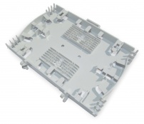 В основном, сплайс кассета – имеет вид прямоугольной плоской панели из пластика, в которой размещены специальные канавки для помещения в них соединённых оптоволокон. Данный способ фиксации оптоволокон позволяет надёжно закрепить все соединяемые элементы оптических кабелей. За счёт того, что в таких сплайс-кассетах предусмотрено дополнительное свободное пространство, в них можно уложить технологический запас оптических волокон, что в последствии даст возможность, в случае возникновения такой потребности, за короткий промежуток времени осуществить «разварку» оптоволокон).