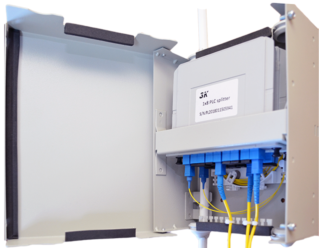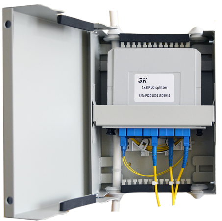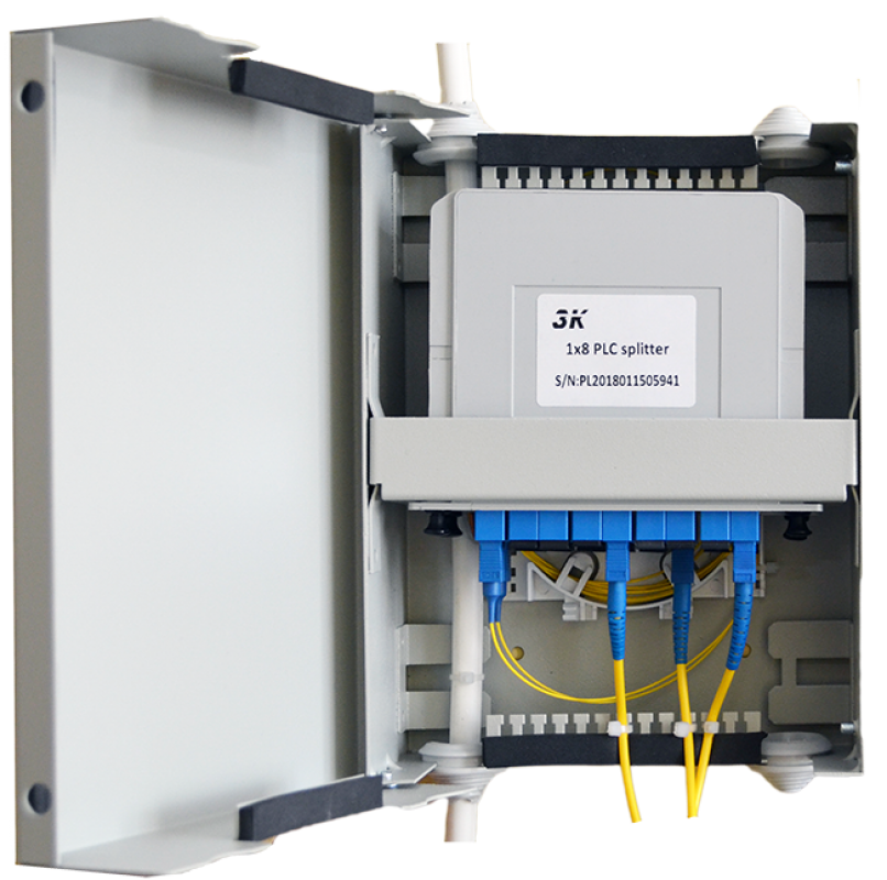 При помощи сменных кронштейнов возможна установка двух кассетных делителей или шестнадцати адаптеров SC. Так же на каждой из боковых стенок имееются крепления для сварных или планарных делителей при помощи кабельных стяжек.