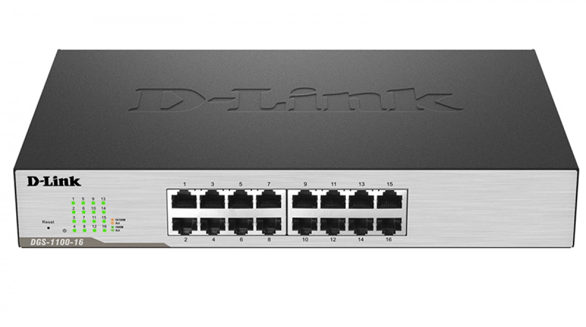 Коммутаторы EasySmart серии D-LINK DGS-1100-16 обеспечивают доступное по цене решение для SOHO (малого и среднего бизнеса), а также для развертывания небольших предприятий для которых требуется простое управление сетью. Коммутатор производится в небольшом металлическом корпусе и имеет 16 портов 10/100/1000Base-T.