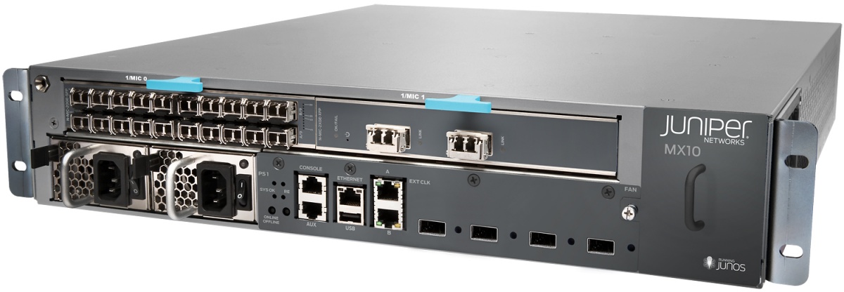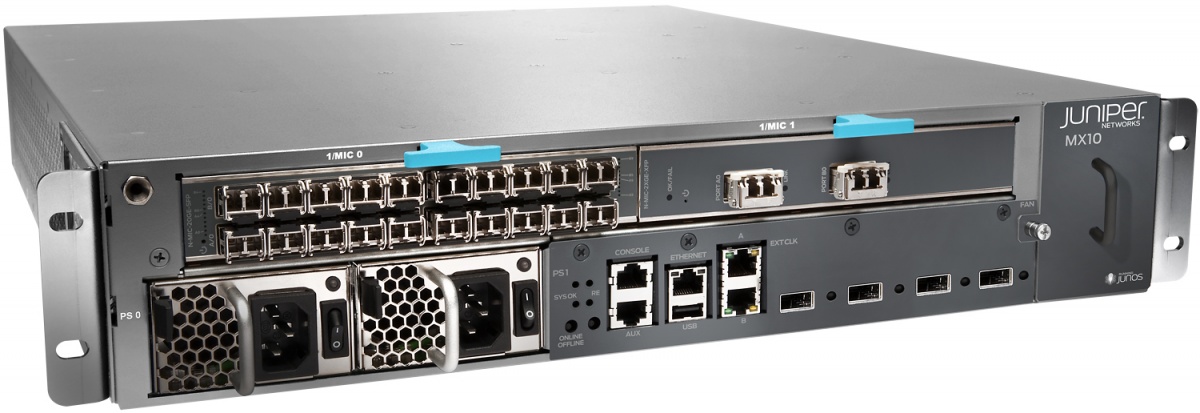 Маршрутизатор JUNIPER MX10 - компактный и полнофункциональный 3D маршрутизатор, который идеально подходит для корпоративных и сервисных приложений и оптимизирован для использования в условиях ограниченного пространства и мощности. Он оснащен 2 слотами модульной интерфейсной платы (MIC), которые обеспечивают гибкое подключение, а также слот MS-MIC. Данный маршрутизатор может обновить через к версиям MX40 и MX80, чтобы масштабировать сеть, подписчиков и услуги, уменьшая вложения.