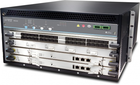 Высотой всего лишь 5U маршрутизатор JUNIPER MX240 представляет собой компактную модульную платформу с пропускной способностью 1,92 Тбит/с. Благодаря модульной структуре стало возможным комплектовать шасси различным набором интерфейсов. К примеру, в маршрутизаторе JUNIPER MX240 свободно 2 слота, в которые можно установить максимум по 2 карты по 40x1GE или 2 карты по 40х10GE (в разных комбинациях). Также, вместо одного из модулей контроля можно установить еще одну карту расширения, с помощью которой можно увеличить количество 10GE XFP портов до 120 или до 120xGE SFP.