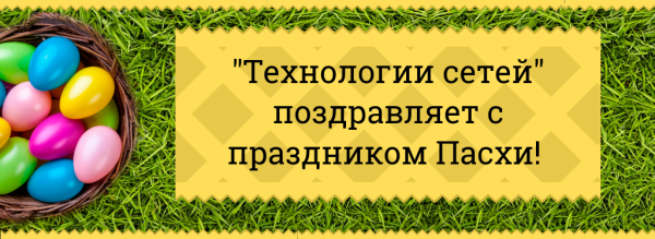 Компания "Технологии сетей" искренне поздравляет Всех с наступающим праздником Пасхи и обращает Ваше внимание на режим работы компании в период с 29 апреля по 11 мая 2019 года: