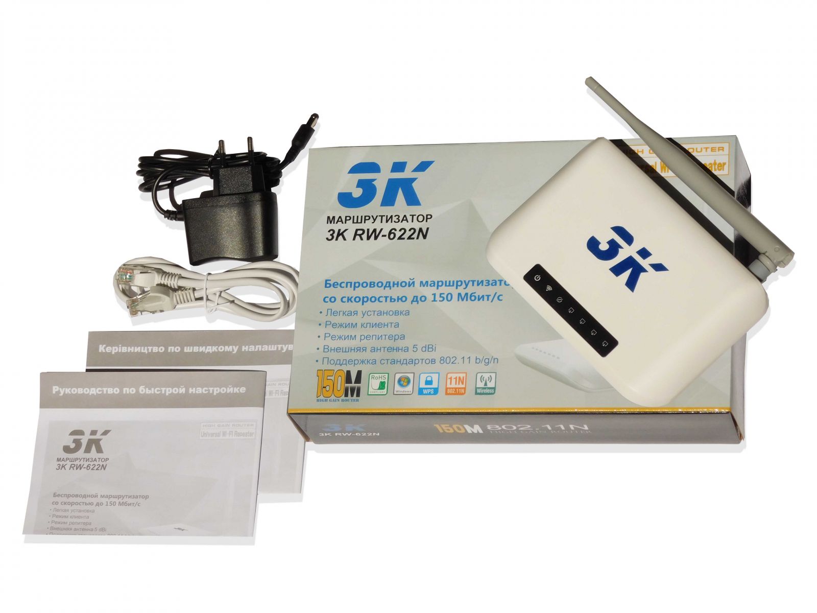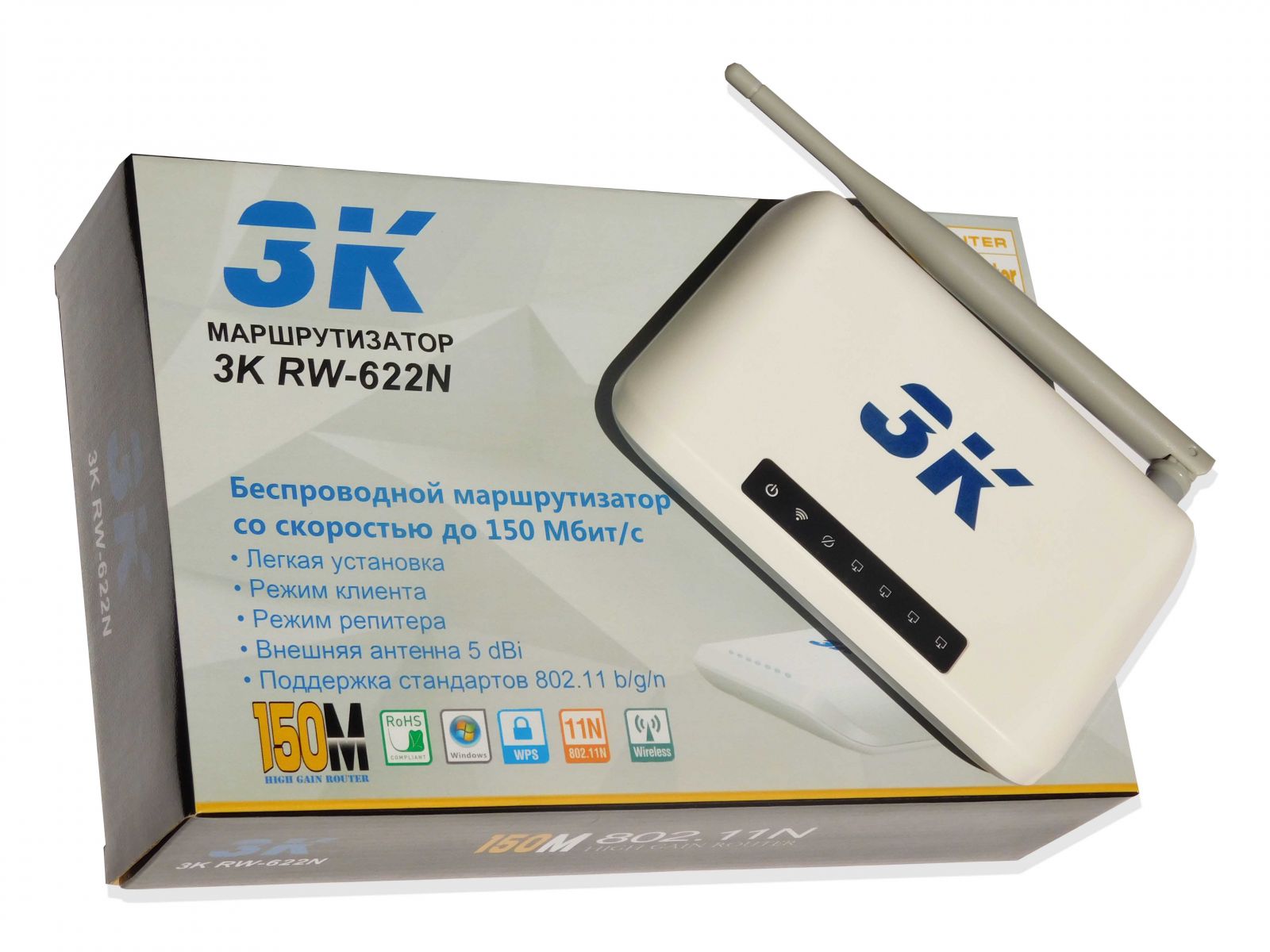 Режим «повторителя» увеличивает зону покрытия уже установленной беспроводной сети. Режим «клиента» помогает соединить ПК не оснащенного встроенным Wi-Fi модулем не применяя провод, а используя Wi-Fi. С этой целью зачастую применяют мини USB Wi-Fi адаптеры, оснащенные внутренними антеннами – это существенно сокращает дистанцию приёма/передачи. 3К RW-622N не имеет указанного недостатка, поскольку он оснащён наружной антенной с очень хорошим показателем усиления.