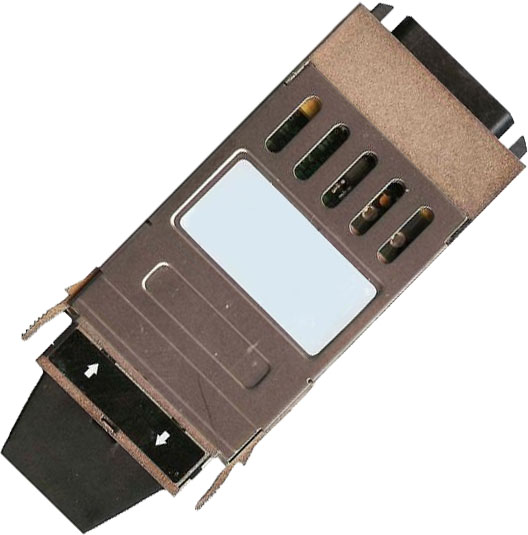 Поначалу, это были устройства, которые нужно было внедрить в сетевое устройство. С внешней стороны приёмопередатчика находился разъем, через которые происходило подключение к электро плате сетевого устройства. Передатчик впаивали прямо в плату. Суть новации оптических приёмопередатчиков – сделать «физический контакт» разъемным, с допустимостью «быстрой» смены. То есть, нужно было получить возможность включать и выключать этот «контакт» непосредственно во время работы. Это привело к появлению приёмопередатчиков.