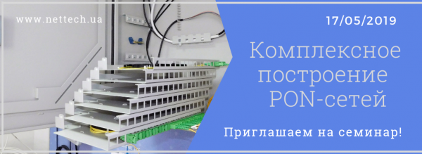 17 мая 2019 г. в 12:30 в офисе компании «Технологии сетей» состоится семинар "Комплексное построение PON-сетей".