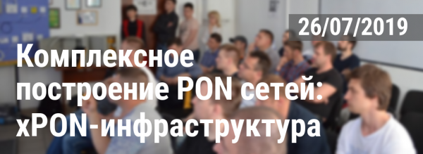 Рады сообщить, что в ближайшее время, а именно 26 июля 2019, в офисе компании «Технологии сетей» состоится семинар-практикум «Комплексное построение PON-сетей: xPON-инфраструктура». Приглашаем всех желающих присоединиться к мероприятию!