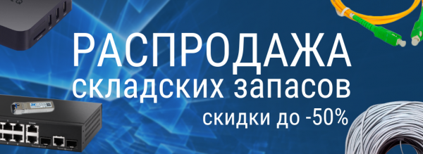 Спешим сообщить о том, что компания «Технологии сетей» проводит распродажу складских остатков сетевого оборудования, кабеля и компонентов для построения телекоммуникационных сетей по сниженным ценам!