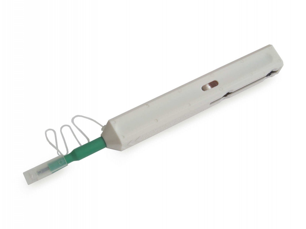 Очиститель One Click Cleaner позволяет очищать торцы коннекторов патчкордов или пигтейлов, а так же торцы разъемов в оптических адаптерах, смонтированных в патч-панелях коммутационного кросса. Такая возможность позволяет чистить оптические разъемы, не разбирая кросс, что уменьшает риск повреждения разваренного в сплайс-кассете оптического волокна. Очиститель One-Click Cleaner очищает коннектор в одно движение. Для проведения очистки вставьте его в разъем и нажмите корпус очистителя до характерного щелчка.
