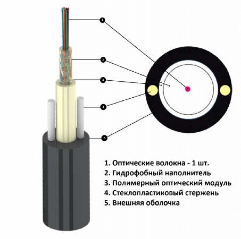 Монотубный самонесущий диэлектрический кабель (ADSS) круглого сечения. Рекомендуется к использованию на опорах линий связи, ЛЭП, опорах освещения, контактной сети электротранспорта, между строениями, по фасадам зданий, и для протягивания в кабельных лотках, каналах, кабельной канализации, трубах, тоннелях. Выполнен в соответствии нормативам: ДСТУ ІЕС 60794-1-1-2002, ДСТУ ІЕС 60794-3-2002, ГСТУ 45.019-2001, ГОСТ 18690-82