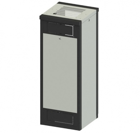 Передние двери установлены на прочных петлях. Двери не болтаются. Полотно двери усилено, нет ощущения гибкости двери при открывании. В базовой комплектации предусмотрены четыре (4) места под установку блоков вентиляторов. Шкаф имеет регулируемые опоры для компенсации неровностей пола.