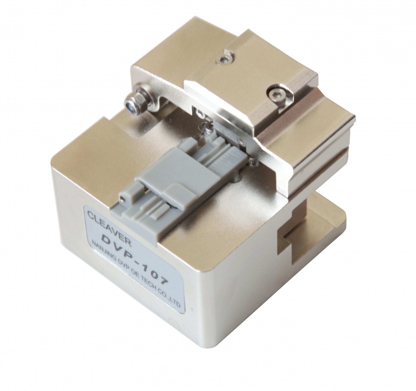DVP-107H – прецизионный скалыватель оптоволокон, используется для выполнения прямого скола волокна, для дальнейшего его сваривания или соединения волокна механическим способом. Термин «прецизионный» в данном случае обозначает показатель погрешности, класс точности в процессе сборке и настройки. К примеру, миллиметр для определённых узлов — это существенно. Колебания каретки и наковальни менее миллиметра, а высота лезвия в соотношении с условным нулевым уровнем измеряется в микрометрах.