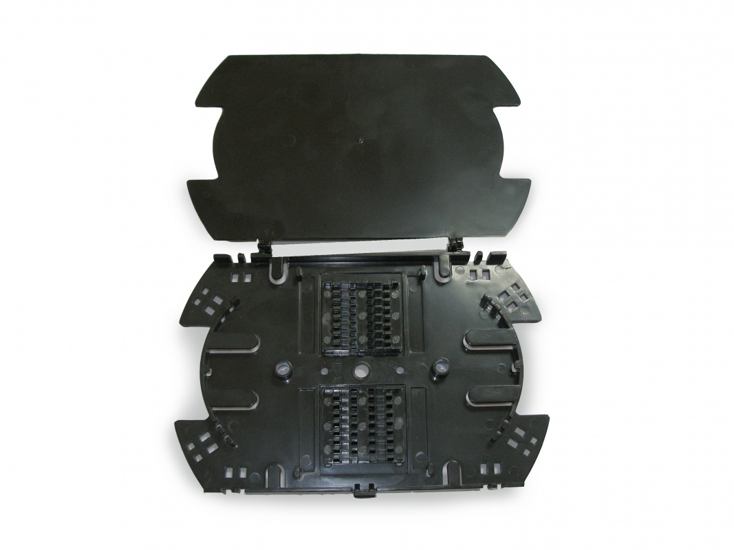 Сплайс-пластина (кассета) – это специально изготовленная, в основном конструкция из пластика, служит для фиксации и хранения объединяемых отповолокон кабеля после сварки, а также хранения запаса оптоволокон. На пластине размещены специальные углубления (канавки) для укладывания в них сваренных оптоволокон. В данной пластине предусмотрена возможность размещения 16 гильз, в которых находятся сваренные оптоволокна, а также есть возможность разместить второй ряд гильз и общее их количество составит 32 штуки. Размеры гильз, которые могут быть установлены в данной кассете следующие: 40 мм, 60 мм.