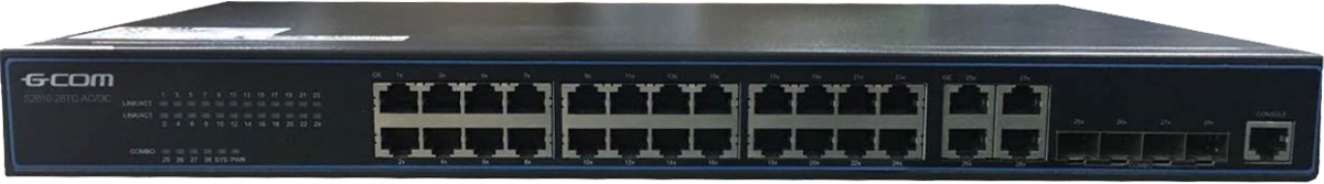 Коммутатор управляемый L2 GCOM S2610-28TC является коммутатором доступа уровня L2, имеет 24 порта 10 / 100Base-T и 4 (четыре) комбо порта 10/100 / 1000Base-T. Поддерживает необходимый набор функций для организации качественного сервиса, а так же функцию диагностики кабеля, DDM и защиту от статики.