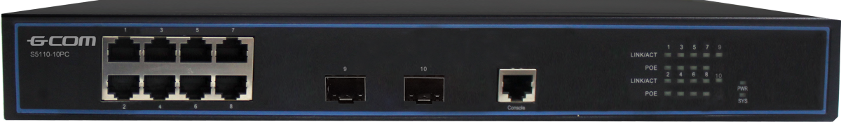 Коммутатор управляемый L2 GCOM S5110-10PC имеет 8 * 10/100 / 1000Base-T гигабитных портов доступа и 2 SFP порты для организации аплиинков. Он также высокопроизводительный процессор для обеспечения максимальной скорости пересылки и линейной емкости.