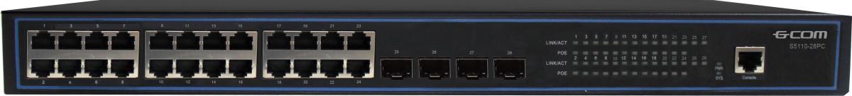 Коммутатор управляемый L2 GCOM S5110-28PC содержит 8 * 10/100 / 1000Base-T гигабитных портов доступа и 4 SFP порта для организации АПЛИНК. Он также имеет высокопроизводительный процессор для обеспечения максимальной скорости пересылки и линейной емкости.