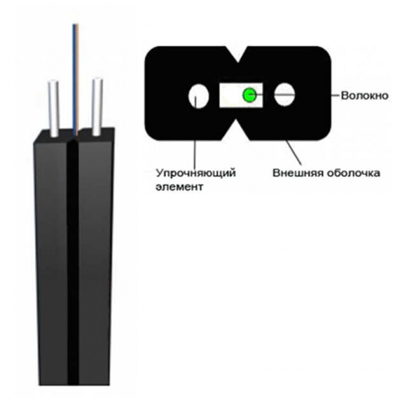 В даному кабелі передбачено одне оптичне волокно, яке повністю відповідає вимогам ITU-T G.657. Зовнішня оболонка кабелю зроблена зі спеціального матеріалу, який відрізняється високим рівнем температурної та хімічної стійкості, вогнестійкістю. Також в даному кабелі є дві силові складові, завдяки яким кабель витримує навантаження на натяг.