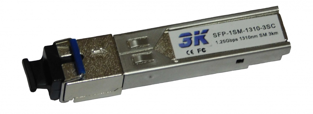 С помощью модуля 3K SFP-1SM-1310nm-3SC создаются соединения по технологии WDM. Этот модуль предусматривает работу с одномодовым кабелем и рассчитан на транспорт данных до 3 км. Описываемый модуль оборудован 1 оптическим портом и разъёмом SC, допускается «быстрая» замена и установка.